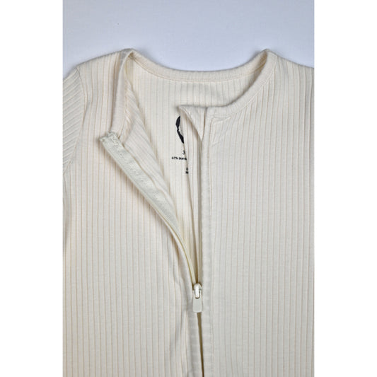 Organic Cotton and Bamboo Ribbed Zip Sleepsuit - Ecru