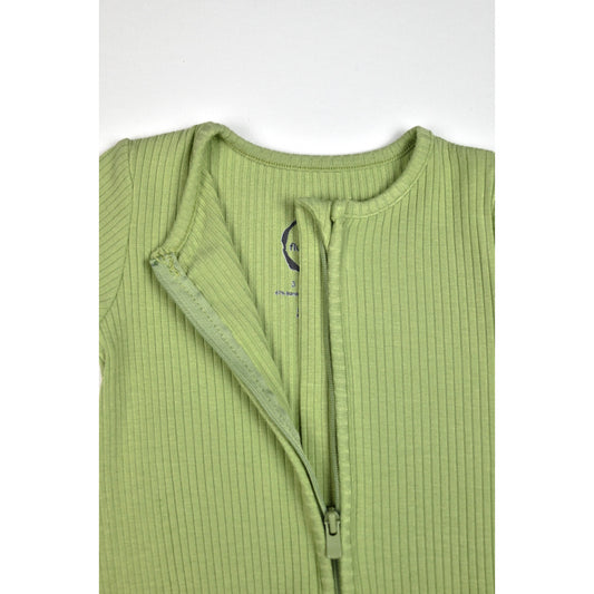 Organic Cotton and Bamboo Ribbed Zip Sleepsuit - Sage