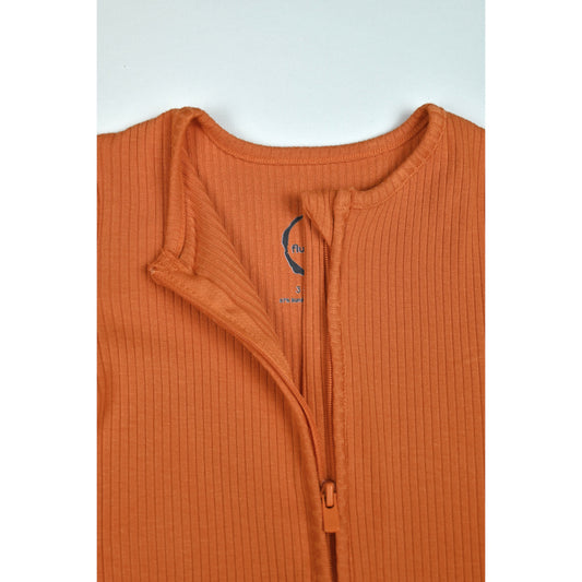 Organic Cotton and Bamboo Ribbed Zip Sleepsuit - Burnt Orange