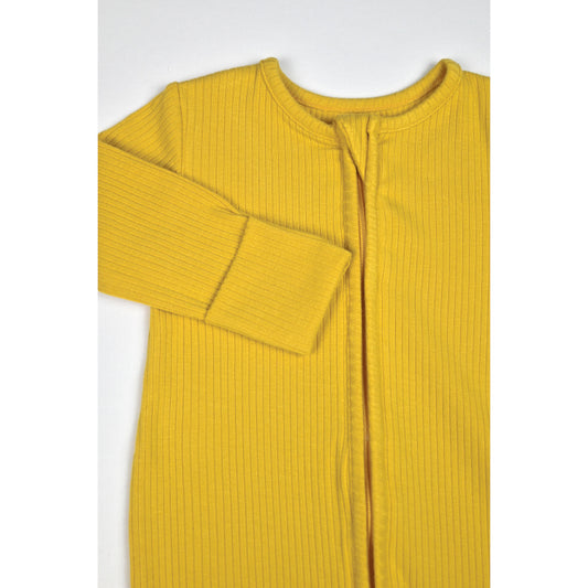 Organic Cotton and Bamboo Ribbed Zip Sleepsuit - Mustard